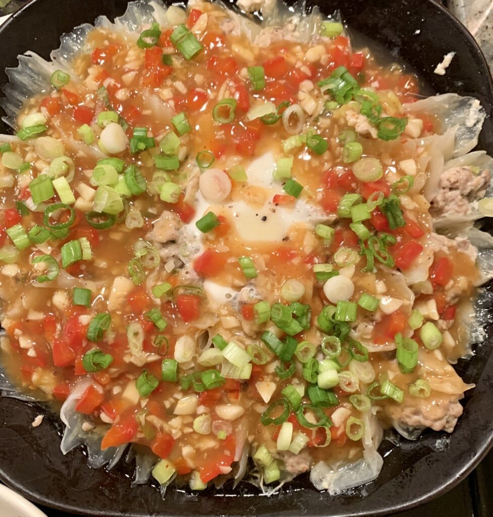 This dish is relatively healthy using a good balance of minced lean meat with lots of chopped veggies. Additionally, steaming makes the overall dish soft and flavorful.