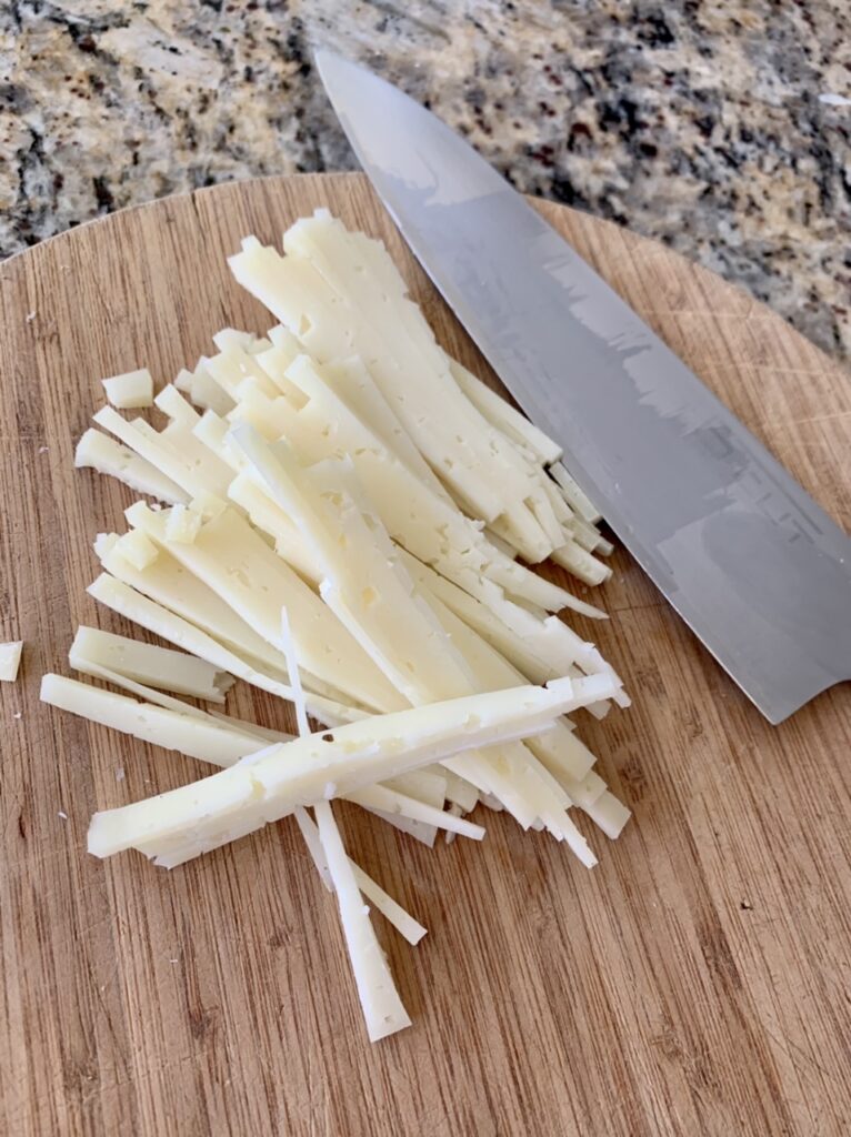 - 4 slices (3.5oz/100g) Spanish Manchego cheese cut into strips