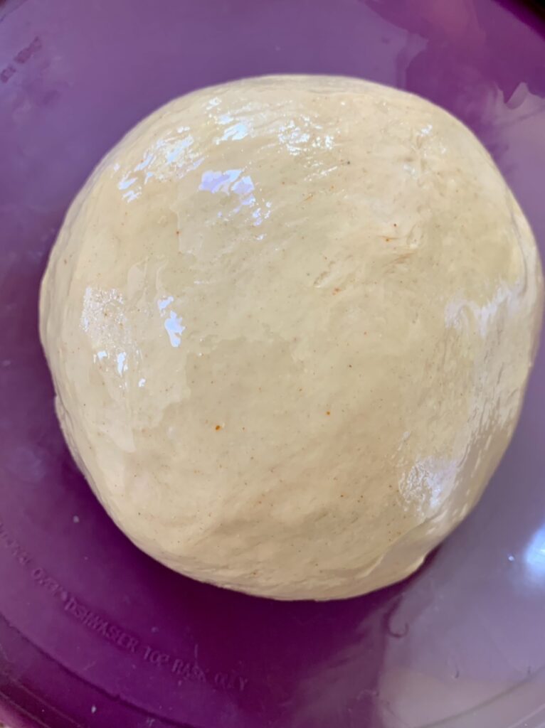 - Shape dough into a ball, and place in a lightly oiled bowl. Cover and leave to proof in a warm spot for one hour, or until the dough is slightly puffy.