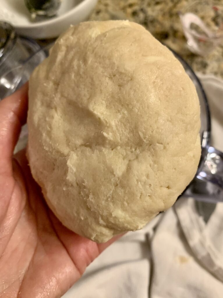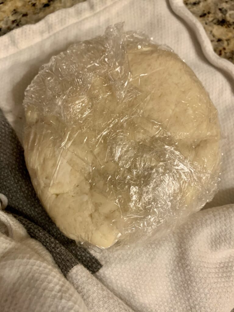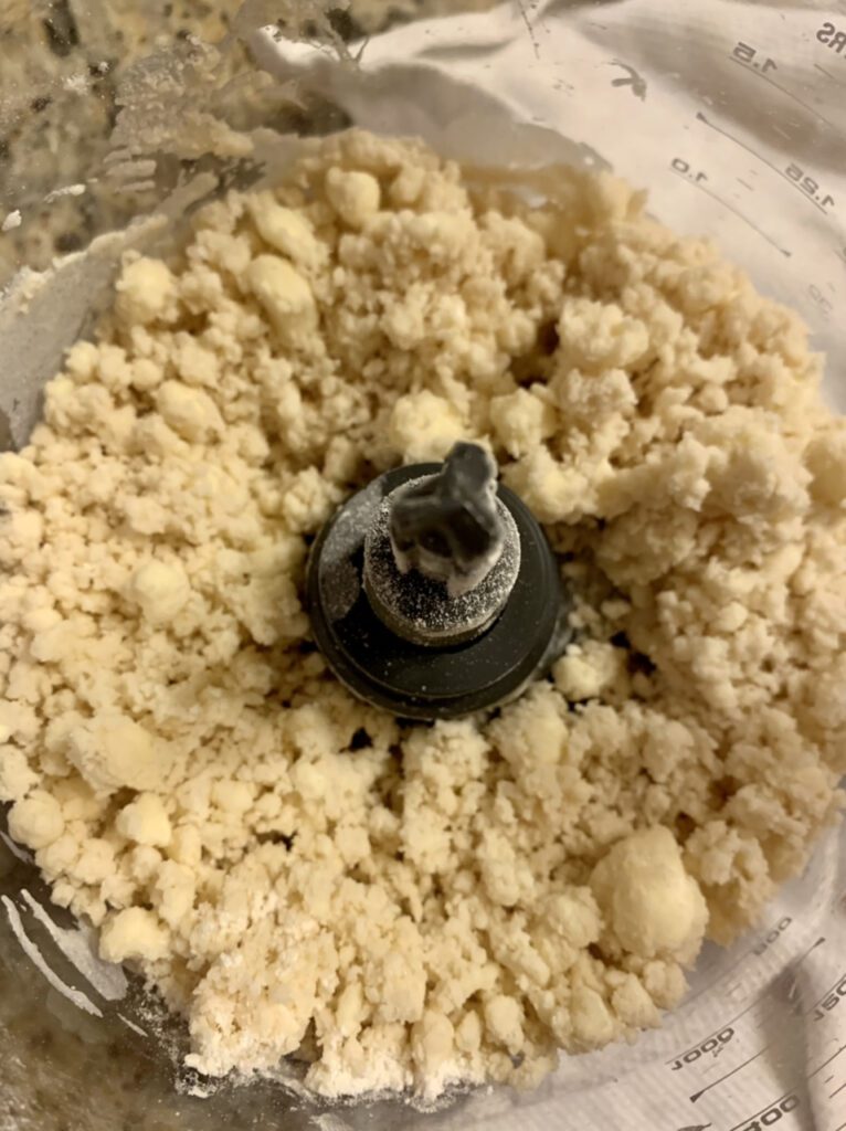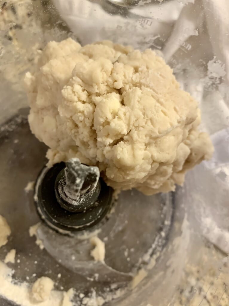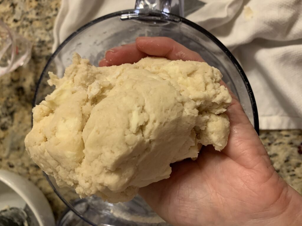 - Add in water and pulse until a dough is formed. Remove and pat into a block. Wrap dough with plastic cling wrap and chill in fridge for at least 30 minutes before using.