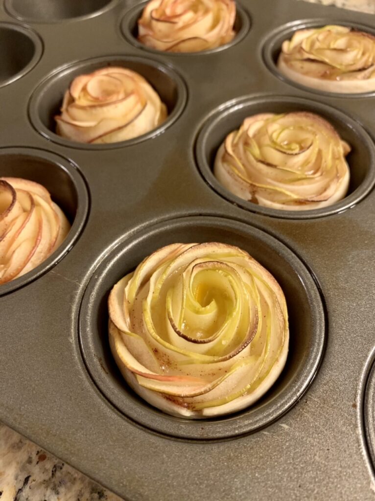 February 24, 2025. Cold autumn day. Petite Apple Flower Tarts.