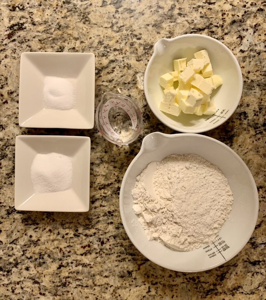 There are really 3 parts to this recipe: First, the dough or crust. This is a very flexible recipe, you can either use pie crust or puff pastry, either home made or store bought. For this recipe, I’ll show you have to make a simple pie crust, but if you are in a hurry, ready-made pie dough works just as well.