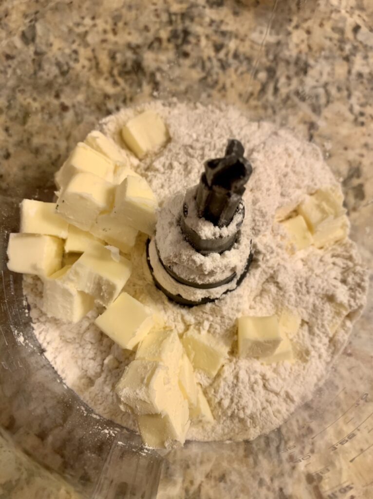 *Baker’s tip: If you do not have a food processor, simply whisk flour, sugar and salt in a large bowl. Add butter and use your fingertips to rub the cubed butter into the flour until it resembles coarse breadcrumbs. (Or use a pastry cutter if you have one handy). Gradually add water and mix with spatula until it forms into a dough.