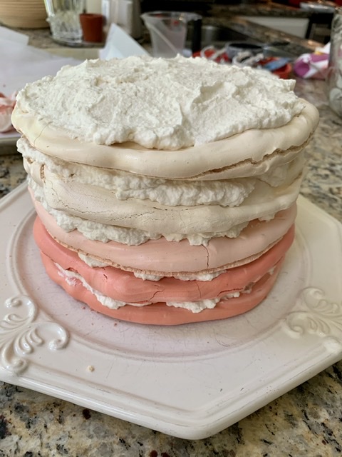 Assembling Ombré Pavlova Cloud Cake