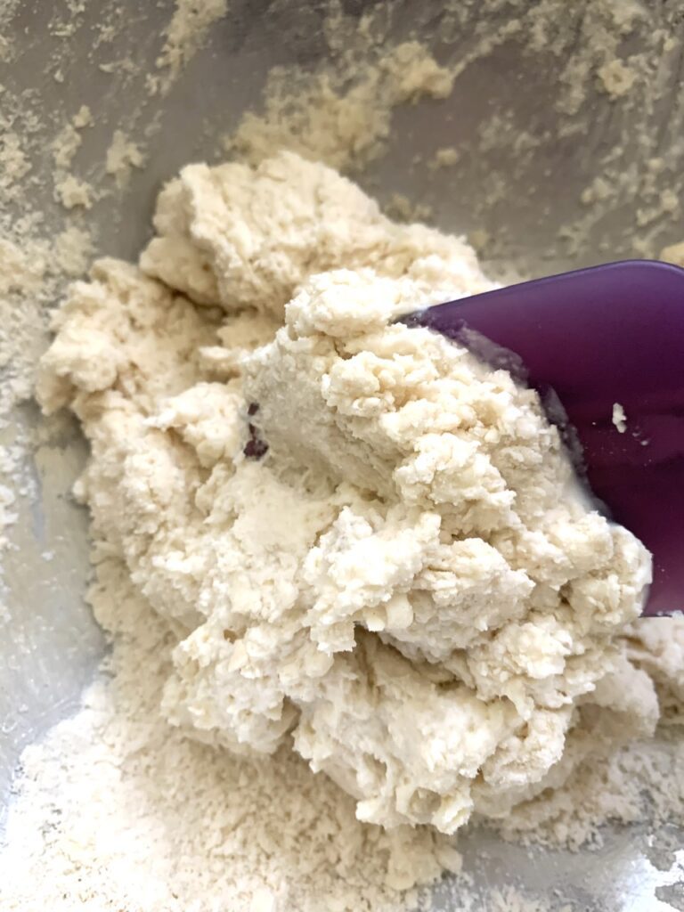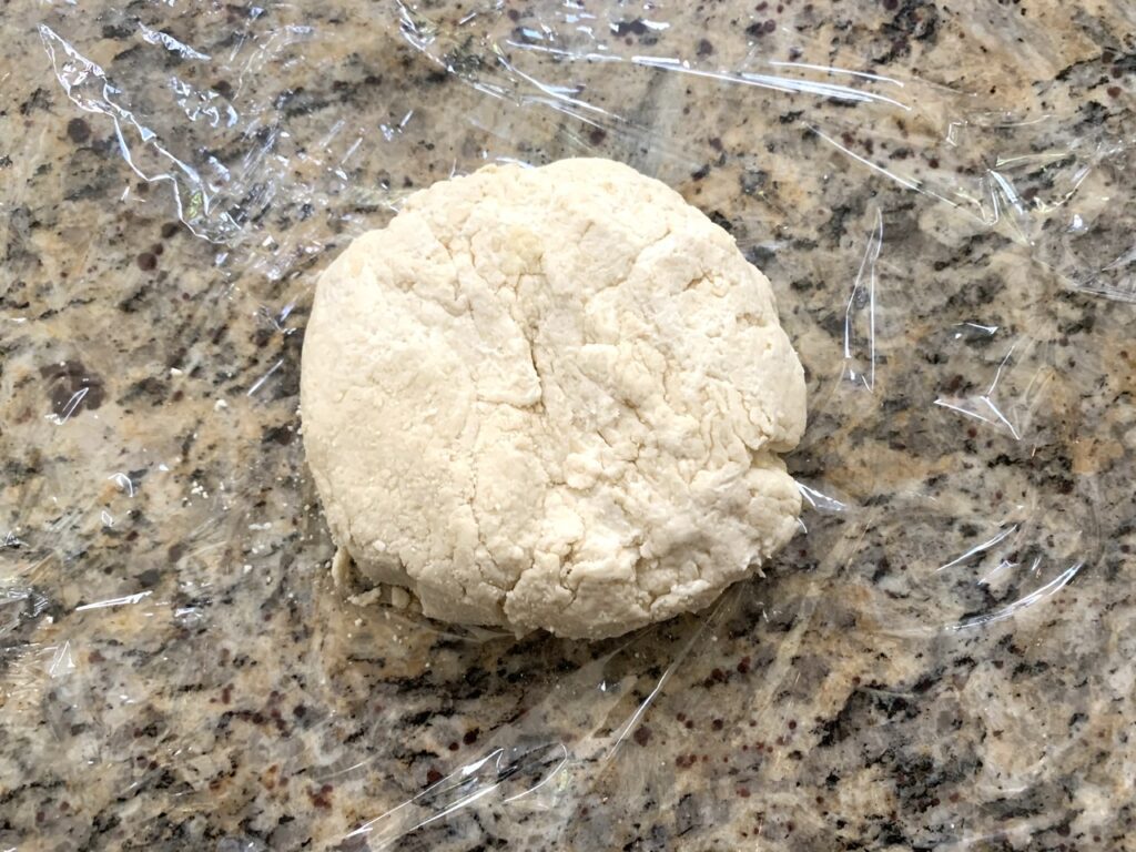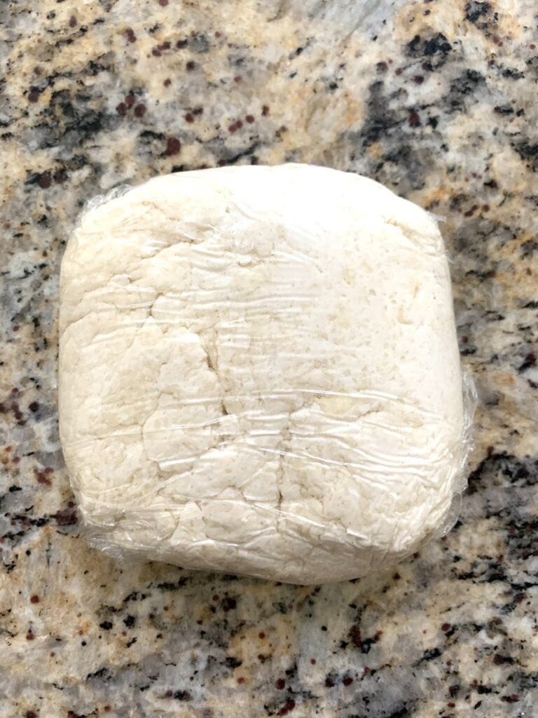 Then, pat dough into a ball. Next, wrap with cling wrap and chill in the fridge for 30 minutes.