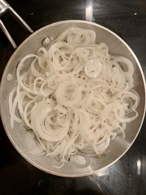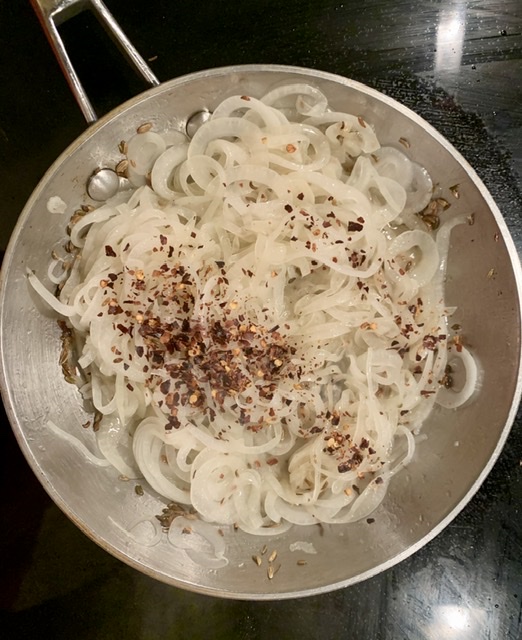- Heat up olive oil in pan. Add fennel seeds to toast lightly (if using). Add onions and gently stir to soften, about 3-5 mins. Add red pepper flakes if using. Set aside.