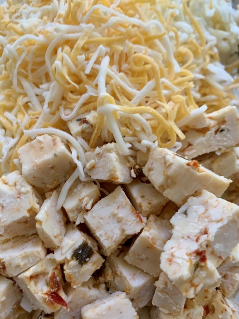 - 6 ounces Shredded and cubed Habanero Cheddar, or your choice of spicy cheese (about 1½ cups)