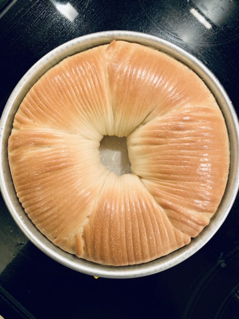 Jump to RecipeThis ring bread that looks like pouffy skeins of sheep 🐑 wool has been making its round on social media recently. I saw it posted in one of the Baking groups I follow on Facebook. I thought it looks fun, plus it reminded me of the Asian-inspired filled crescent rolls I made a while back. It also has the loft of the easy pouffy popovers my kiddo loves, the texture of a milk bread, AND it’s also easy to pull apart, like my yummy garlic rolls.