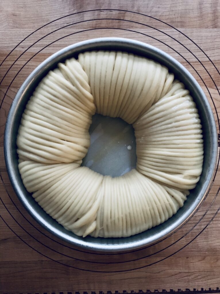 Overall, it’s a pretty straightforward recipe – make the dough, shape it and finally bake it. In between, you let the dough rest and rise. Lots of patience with bread! Hands-on time is not too long. I think the trickiest part is shaping the bread, which requires lots of cutting!